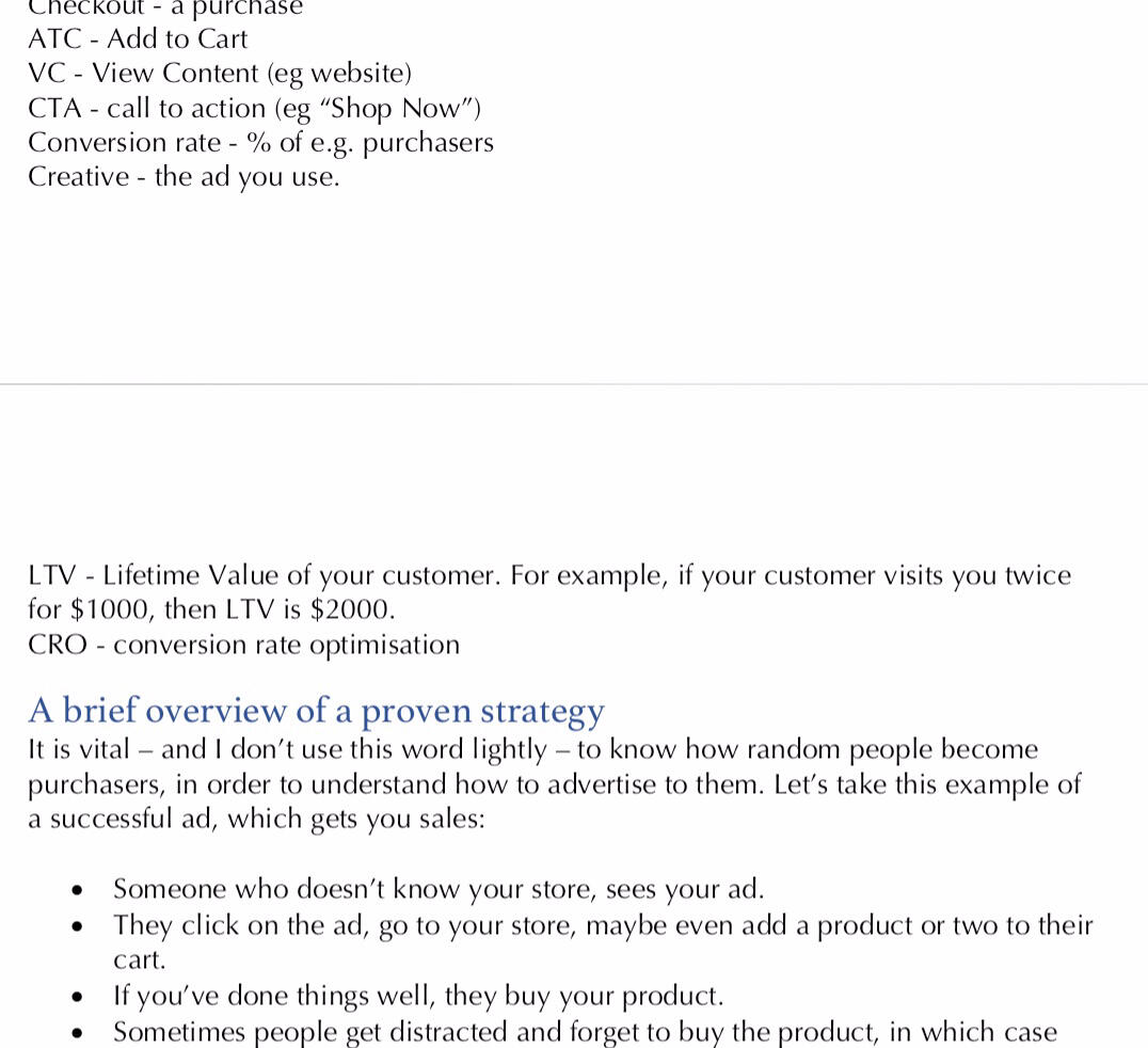“THERE’S SO MANY METHODS. WHICH DO I CHOOSE?”1. PPE STRATEGYOPTIMISATION FOR PPE METHOD2. SINGLE INTEREST TARGETING STRATEGY – PREFERRED METHODWHAT AD COPY SHOULD I USE FOR PROSPECTING (TOFU)?**EXAMPLES OF WINNING TOFU AD COPY (ROAS 1.90 – 5.37) **RETARGETINGOTHER AD CREATIVES TO TRY OUT THAT WILL INCREASE ROASSHOULD I USE CAMPAIGN BUDGET OPTIMISATION (CBO)?USING PRE-SELL FUNNELSCONCLUSION